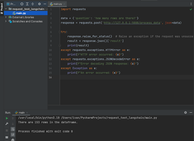 그리고 새로운 프로젝트에서 JSON 형태로 위와 같은 requests 값을 보내면 result를 전달해주는것을 확인할 수 있다.
